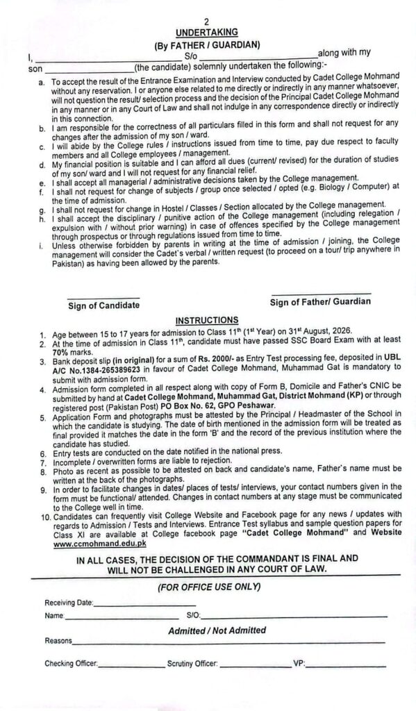 FINAL RESULT for Admission to Class VIII (7th Entry) – 2026 announced.
